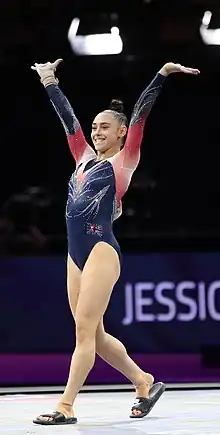 Jessica Gadirova (born 3 October 2004) is an English artistic gymnast of Irish birth and Azerbaijani descent, representing Great Britain internationally.[4] She represented Great Britain at the 2020 Summer Olympics and won a bronze medal in the team event and was part of the silver medal-winning team at the 2022 World Championships and gold medal-winning team at the 2023 European Artistic Gymnastics Championships.