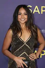 In 2010, Mauboy made her acting debut in the musical comedy-drama film Bran Nue Dae alongside Missy Higgins and Geoffrey Rush.[8] The film received mixed reviews from critics, despite its box office success in Australia.[9][10] That same year, Mauboy released her second studio album Get 'Em Girls and five music videos for its singles were shot. American director Hype Williams directed the music videos for the title track "Get 'Em Girls" and "Saturday Night" which were both filmed in Los Angeles.[11][12] The video for "Get 'Em Girls", which featured Mauboy strutting the catwalk and modelling a variety of looks,[13][14] was heavily criticised by fans on YouTube who described it as "cheap", "tacky" and "disappointing".[13] American rapper Snoop Dogg's appearance in the video was described by some fans as "hypersexual" and "sleazy".[13] The music videos for the album's following singles "What Happened to Us" and "Inescapable" were directed by Mark Alston, who previously directed the video for Mauboy's 2009 single "Let Me Be Me".[15][16] In 2012, Mauboy starred alongside Chris O'Dowd in the musical film The Sapphires, which earned her the AACTA Award for Best Actress in a Supporting Role.[17] The film received positive reviews from critics and was a box office success in Australia.[18][19][20]