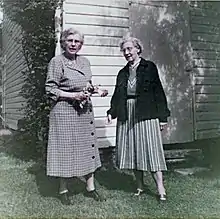 Jessie Taft with lifelong companion Virginia Robinson in May 1954 by their home, "The Pocket", in Flourtown, Pennsylvania