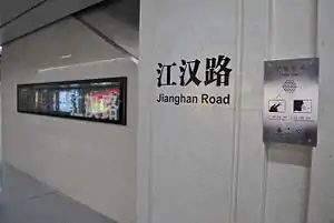 Jianghan Road Station (Chinese: 江汉路站), is an interchange station on Line 2 and Line 6 of the Wuhan Metro. It entered revenue service on December 28, 2012. It is located in Jianghan District.[1]
