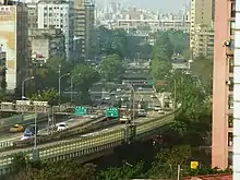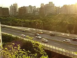 Jianguo Road (Chinese: 建國南北路) is a major north–south arterial road in Taipei, Taiwan. It begins at the Yuanshan interchange of National Highway 1 and ends at Xinhai Road. An elevated expressway, Jianguo Expressway (建國高架道路) runs above the entire length of Jianguo Road. The expressway was completed in 1982.