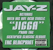 "Jigga That Nigga" is a song by the American rapper Jay-Z. It was the third single from his sixth studio album, The Blueprint. It has additional vocals from Stephanie Miller and Michelle Mills but they are not credited as featuring. In the US, the song peaked at #66 on the Hot 100. In recent years, his nickname "jigga" has become synonymous with being "fresh, fly" and "stylish."[1][2]
