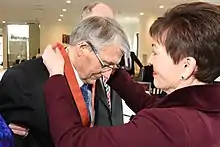 He was appointed a Companion of the New Zealand Order of Merit in the 2017 Queen's Birthday Honours, for services as a Member of Parliament.[58] On 3 September 2017, he had a special investiture ceremony at Nazareth House attended by the Governor-General (Dame Patsy Reddy), the Mayor of Christchurch (Lianne Dalziel), and former Prime Minister Helen Clark.[57]