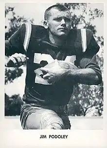 James Podoley (September 16, 1933 – January 24, 2010) was an American football halfback and end for the Washington Redskins of the National Football League (NFL). Born in Mount Morris, Michigan, he played college football at Central Michigan University and was drafted in the fourth round of the 1957 NFL Draft.