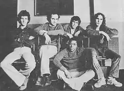 Members of Raíces pictured in 1980: Raúl Cuadro, Alberto Bengolea, Andrés Calamaro, Beto Satragni and Jimmy Santos in 1980