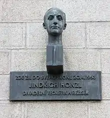 Memorial plaque of Jindřich Honzl at his former place of residence in Prague