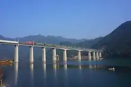 The Jiujiang–Quzhou railway is an electrified railway in China. The line is 333 kilometres (207 mi) long and has a design speed of 200 kilometres per hour (120 mph).[1][2]