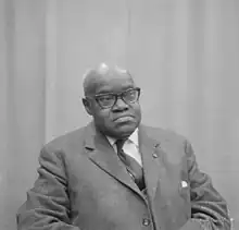 On 18 November 1965, Einaar was appointed Minister Plenipotentiary of Suriname,[7] and had been acting minister since 1 January.[9] The Minister Plenipotentiary represented Suriname in the Council of Ministers,[10] and is allowed to address the House of Representatives.[1] Princess Beatrix announced her engagement to Prince Claus. On 10 November,[11] the States General of the Netherlands had to approve the marriage and the naturalisation of Prince Claus.[12] The televised and heated debate focused on Claus' past in Nazi Germany even though he had seen no combat.[1][13] During the debate, Einaar took the microphone, and delivered a passionate plea to allow the marriage of two people who love each other.[14][7] The marriage was approved with 132 votes in favour and 9 against.[12] Einaar later received his first fan mail.[1] He served until 1 July 1968,[7] and became President Curator of the University of Suriname.[15]