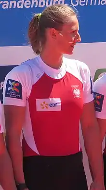 Joanna Leszczyńska (Polish pronunciation: [jɔˈanna lɛʂˈt͡ʂɨj̃ska]; born 18 December 1988 in Warsaw) is a Polish rower.[1] At the 2012 Summer Olympics, she competed in the women's quadruple sculls.[2] She won bronze medal in quadruple sculls at the 2016 Summer Olympics, with Maria Springwald, Agnieszka Kobus and Monika Ciaciuch.[3] That was also the team that won silver at the 2016 European Championships and bronze at the 2015 European Championships on home water in Poznan.[4][5]