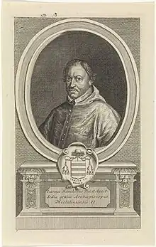 ![]() Jan Baptist Jongelinck's engraving of a portrait of Joannes Hauchin. Published in Cornelis van Gestel, Historia sacra et profana archiepiscopatus Mechliniensis (1725) | |
