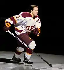 She graduated with honours from the University of Minnesota Duluth in 2011 with a Bachelor of Accountancy. She ended her college hockey career as the Bulldogs' all-time leader in scoring for defencemen with 105 points on 19 goals and 86 assists in 127 games.[14]