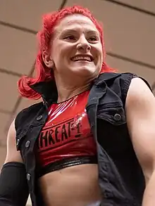 Jody Marie Gyivicsan (born October 30, 1988), known by the ring name Jody Threat, is a Canadian professional wrestler. She is currently signed to Total Nonstop Action Wrestling (TNA).[3] Threat has also worked on the independent circuit on various promotions across Canada and the U.S.[2]