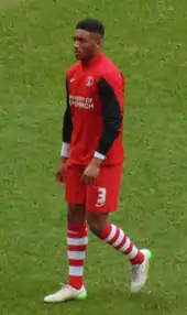 Joseph Dave Gomez[3] was born on 23 May 1997[4] in Catford, Greater London,[5] to a Gambian father and an English mother.[6] He joined the academy at nearby Charlton Athletic at the age of 10,[7] making his debut for the club's under-18 team at just 13 years old.[8] Despite strong interest from other clubs,[9] Gomez signed his first professional contract with Charlton in October 2014.[10] His first-team debut came under manager Bob Peeters in a 4–0 home victory over Colchester United on 12 August 2014 in the 2014–15 League Cup, playing the full 90 minutes at right back.[11][12] A week later he made his league debut in a 3–2 home win against Derby County in the Championship.[13] Gomez went on to make 24 appearances during his first season.[14]