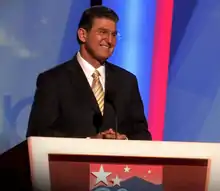 In 2003, Manchin announced his intention to challenge incumbent Democratic Governor Bob Wise in the 2004 Democratic primary.[37] Wise decided not to seek reelection after a scandal,[38] and Manchin won the Democratic primary and general election by large margins.[39][40] His election marked the first time since 1964 that a West Virginia governor was succeeded by another governor from the same party.[41]
