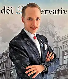 On 21 March 2017 he founded a new political party in Luxembourg called déi Konservativ (“The Conservatives”), added by “d'Fräiheetspartei“ (en. (“Freedomparty“) as name suffix in November, 2021 of which he is the current chairman.[21][22] On 10 April he was elected to his political office at the extraordinary national congress of the party,[23] and re-elected with all voices at the annual national congress on 7 January 2018 and confirmed since then.[24]