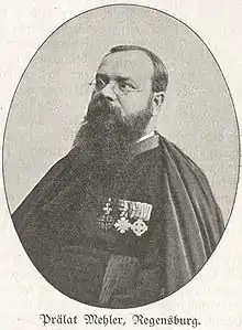 Johann Baptist Mehler (14 June 1860 in Tirschenreuth, Oberpfalz, died 15 March 1930 in Regensburg ) was a German Catholic priest, prelate, and religious writer of the Roman Catholic Diocese of Regensburg.
