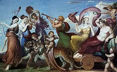 Returning to Germany in 1822, he received a commission from King William I of Württemberg to paint draft sketches of reliefs on canvas, which were later sculpted at Rosenstein Palace. He was there again from 1826 to 1828, painting scenes from the Bacchus myth on the dining room ceiling, and designs for the Royal children. Although these were the works that brought him recognition, he felt that they were not sufficiently serious for his true artistic nature.[1]
