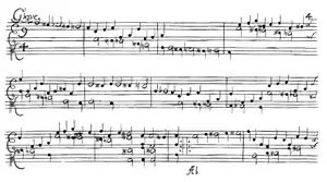 His style was influenced by that of the somewhat older Walther, with whom he worked for several years at the Dresden Hofkapelle. In turn, Westhoff influenced Johann Sebastian Bach, who was his colleague in Weimar; the two composers probably met in 1703.[4] Westhoff's known music includes two collections published during his lifetime: Sonate a Violino solo con basso continuo (Dresden, 1694) and six solo partitas for violin published in Dresden in 1696. The solo partitas may be a reprint of a collection currently considered lost, Erstes Dutzend Allemanden, Couranten, Sarabanden und Giguen Violino Solo sonder Passo Continuo (Dresden, 1682). Furthermore, two pieces by Westhoff were published in a French magazine, Mercure galant. The first was a sonata for violin and basso continuo published in the December 1682 issue—apparently the piece Westhoff played for Louis XIV, which the king greatly admired.[5] The second, a suite for solo violin, was published in the January 1683 issue.