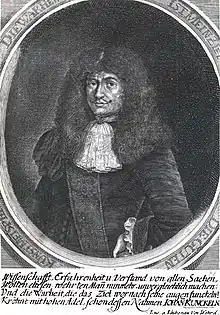 Johann Kunckel, awarded Swedish nobility in 1693 under the Swedish name von Löwenstern-Kunckel and the German version of the name Kunckel von Löwenstern (1630 - prob. 20 March 1703), German chemist, was born in 1630 (or 1638), near Rendsburg, his father being alchemist to the court of Holstein. He became chemist and apothecary to the dukes of Lauenburg, and then to the Elector of Saxony, Johann Georg II, who put him in charge of the royal laboratory at Dresden. Intrigues engineered against him caused him to resign this position in 1677, and for a time he lectured on chemistry at Annaberg and Wittenberg. Invited to Berlin by Frederick William, in 1679 he became director of the laboratory and glass works of Brandenburg. In 1688 the king of Sweden, Charles XI, brought him to Stockholm, ennobling him under the name von Löwenstern-Kunckel in 1693 and making him a member of the Bergskollegium, the Board of Mines. He died probably on 20 March 1703 near Stockholm (other sources claim he died the previous year 1702 at Dreissighufen, his country house near Prenden, Germany).