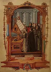 Ockeghem and singers of the royal chapel in a posthumous 1523 miniature