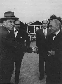 John Österholm (right) shakes hands with Ralf Törngren in the 1950s