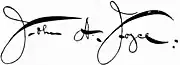 Joyce married Katie M., a clerk at the Treasury Department. She died in 1902.[5][12] Joyce had three daughters, Katie Darling (died 1886), Florence and Libby.[1][2][12][13] Joyce was a Freemason - a member of Columbia Lodge No. 3 in Washington, D.C. He was often referred to as the "poet of Washington".[1]