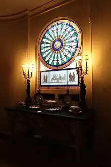 In 1822 John Repton went abroad, and was consulted professionally at Utrecht and at Frankfort-on-the-Oder. Subsequently he restored the Earl De La Warr's seat of Buckhurst Park, near Tunbridge Wells. Before 1835, when he sent in designs for the new Houses of Parliament, he had retired to Springfield near Chelmsford; he gave his services as architect of Springfield church in 1843. He had been elected F.S.A. in 1803, and was a frequent contributor to Archæologia (see vols. xv, xvi, xix, xxi, xxiv and xxvii.). The last two of these communications treated of male and female headdress in England from 1500 to 1700. Another curious paper, "on the beard and the mustachio, chiefly from the sixteenth to the eighteenth century," which was read before the Society of Antiquaries, but not published, was printed at Repton's expense in 1839 (London, 8vo). In 1820 he displayed his antiquarian learning in the production of an "olden-style romance", entitled A trewe Hystorie of the Prince Radapanthus, of which he printed eighty copies in a very small size. His name is not on the title-page, but may be spelt out from the initial letters on turning over the pages. Many articles by him appeared in The Gentleman's Magazine from 1795 and in the British Archæological Association's Journal (cf. xvii. 175–80). In 1816, he contributed a series of drawings of Norwich Cathedral to John Britton's Cathedral Antiquities of Great Britain.[2] He was deaf from infancy and died unmarried at Springfield on 26 November 1860.[1]