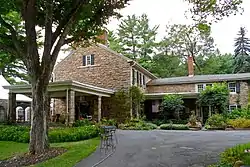The original section of the John Ayres House was built between 1800 and 1810, and expanded between 1815 and 1825. It is a large, 2+1⁄2-story, 5-bay, limestone dwelling in the Federal style. Also situated on the property are a contributing gazebo, carriage house (c. 1895), stable, early stone pig or sheep barn (c. 1895), spring house, and tennis courts (1939).[2]