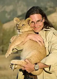 ![]() John Banovich with Lion Cub | |