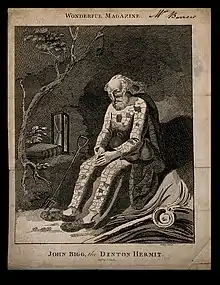 4. Caulfield, James (1819). "Bigg, John, the Dinton Hermit". Portraits, memoirs, and characters, of remarkable persons. Vol. 1. London, England. p. 9-11.