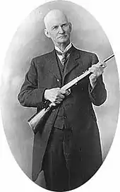John Moses Browning (January 23, 1855[1] – November 26, 1926) was an American firearm designer who developed many varieties of military and civilian firearms, cartridges, and gun mechanisms  many of which are still in use around the world.[2] He made his first firearm at age 13 in his father's gun shop and was awarded the first of his 128 firearm patents on October 7, 1879, at the age of 24.[3] He is regarded as one of the most successful firearms designers of the 19th and 20th centuries and a pioneer of modern repeating, semi-automatic, and automatic firearms.[4]