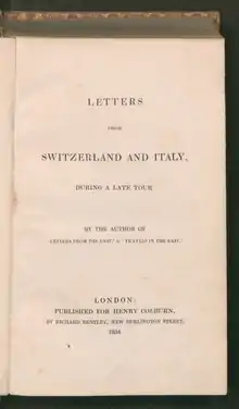 - Letters from Switzerland and Italy 1834
