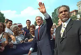 John F. Street with President George W. Bush in Philadelphia during Independence Day in 2001