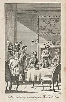 He became known as ‘him who was stabbed by Sally Salisbury’ after an incident on the night of 18 December 1722, when a prostitute, Sally Pridden (known as Salisbury), stabbed him at the Three Tuns tavern in Chandos Street, apparently in a fit of passion during an argument over theatre tickets.[2] She was found guilty of assault and wounding, without intent to kill, and was fined and sent to Newgate prison[3] where she died in 1724.