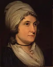 In 1782, aged 27, Flaxman married Anne ("Nancy") Denman, who was to assist him throughout his career. She was well-educated, and a devoted companion. They set up house in Wardour Street, and usually spent their summer holidays as guests of the poet William Hayley, at Eartham in Sussex.[1] Flaxman took a shine to the Denman family, particularly Nancy's younger sister Maria, whom he trained as a sculptor, and to whom he left a great deal in his will. He also employed Nancy's brother Thomas Denman in his studio and it was Denman who completed the various unfinished sculptures in Flaxman's studio after his death.[4] Flaxman's portrait of Maria is held in the Soane Museum.[5]