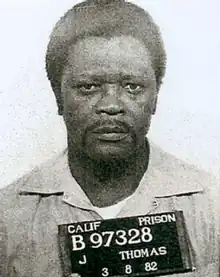 He received a dishonorable discharge, according to his military records, and was arrested for burglary and attempted rape in Los Angeles. Thomas was convicted of these crimes and sentenced in 1957 to six years in the California state prison system. As a result of a pair of parole violations, Thomas remained incarcerated until 1966.[5]