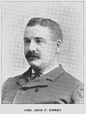 John Franklin Kinney (June 20, 1860 – May 8, 1934) of Rochester, New York was a New York State jurist and Democratic Party operative of the late 19th and early 20th centuries, described as one of "the strong men of the Democratic Party, potent in counsel, a trusted leader and a popular campaign orator."[1]