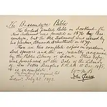 - "First Scots Bible set to make £1,200". The Herald. 13 May 2017.