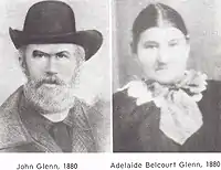 John Glenn (1833 in County Mayo, Ireland – January 9, 1886, in Calgary, Alberta) was the first documented European to settle in the Calgary, Alberta, Canada area. Glenn was an Irish immigrant who first settled in the United States in 1849 and served in the American Civil War. He would then travel to British Columbia before settling in Calgary in 1873 with his wife Adelaide (née Belcourt), and built a small log cabin near the confluence of Fish Creek and the Bow River - in today's Fish Creek Provincial Park.