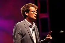 Green enrolled at Kenyon College in 1995 and graduated with a double major in English and religious studies in 2000.[5][12][18] While attending the school, he befriended and was in a comedy troupe with Ransom Riggs.[19][20] After graduation, Green spent about half a year working as a student chaplain at Nationwide Children's Hospital in Columbus, Ohio, while enrolled at the University of Chicago Divinity School, although he never actually attended the school.[12][21][22] He intended to become an Episcopal priest, but the traumatic experiences of working in a hospital with children suffering from life-threatening illnesses and injuries made him reconsider his path. Parts of his experience inspired him to become an author, and later to write The Fault in Our Stars.[10][23][22][12] After his time as a chaplain, Green moved to Chicago where he briefly continued performing with his college comedy troupe.[8][10]