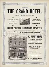 In 1895, Stanbury bought the Grand Hotel at Plymouth, soon after his purchase of the Seymour Hotel in Totnes and the Western Counties Hotel in Paddington.[22] In 1898, he sold the Half-Moon Hotel in Exeter.[23][24][25]