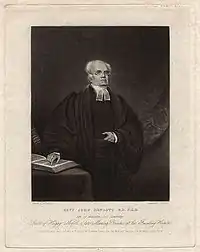 In 1786 he was admitted as a sizar to Magdalene College, Cambridge.[2] The Cambridge Alumni Database lists him as "a ten-year man", which the university defines as: "Under the 1570 statutes it was made possible for a man over the age of twenty-four to proceed to the degree of BD ten years after matriculation without first proceeding to the degrees of BA and MA . The privilege was not much used until shortly before its abolition in the mid-nineteenth century when it had degenerated into a system whereby a man could proceed BD without any formal test of his ability."[3] In 1796 he was awarded the Bachelor of Divinity.