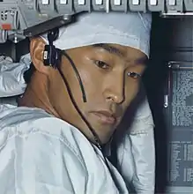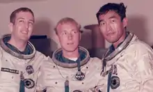 The Apollo 11 mission represented the first contact of humans with a non-Earth surface and concern was expressed by the National Academies of Science that the returning astronauts and spacecraft might inadvertently carry extraterrestrial life which could pose a "catastrophic" risk to humankind.[5] Anxiety was exacerbated by the presence of President of the United States Richard Nixon aboard USS Hornet, the United States Navy aircraft carrier tasked with recovery of the astronauts.[5] To address these issues, a Mobile Quarantine Facility (MQF) was installed aboard the ship in which the returning astronauts, as well as flight surgeon William Carpentier, would be isolated.[5] According to Hirasaki, four NASA engineers responded to a call for volunteers for a technician to be present inside the MQF during the quarantine period for necessary maintenance, and to physically remove the lunar rocks that had been recovered by the mission.[2][6][7][8] Prior to the recovery, the engineers drew straws, Hirasaki drawing the short straw.[8] He spent the next three weeks in quarantine with the astronauts and Carpentier.[8] Hirasaki noted that, prior to the mission, he had read the Michael Crichton book The Andromeda Strain; however, he felt the risks to his personal safety were "very, very minimal."[8]