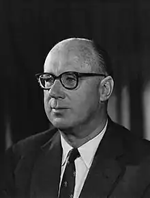 Sir John James Cowperthwaite, KBE, CMG (Chinese: 郭伯偉爵士; 25 April 1915 – 21 January 2006), was a British civil servant who served as Financial Secretary of Hong Kong from 1961 to 1971. His introduction of free market economic policies are widely credited with turning postwar Hong Kong into a thriving global financial centre.[1] During Cowperthwaite's tenure as Financial Secretary, real wages in Hong Kong rose by 50% and the portion of the population in acute poverty fell from 50% to 15%.[2]