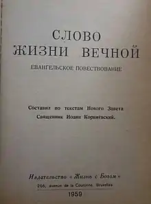 - John Kornievsky, Fr. "The Word of Eternal Life". The publishing house "Life with God", 1959.