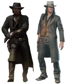 John Marston as he appears in Red Dead Redemption (left) and Red Dead Redemption 2 (right)