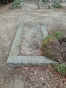 19. A 2014 photograph reveals that MATHER is engraved on the face of the granite border stones, now obscured by the existing ground level. Findagrave.com accessed 24 Aug 2023