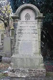 He died in Edinburgh on 22 September 1888, at the age of 71.[3] He is buried with his family in Grange Cemetery in south Edinburgh. The grave lies facing west onto the western path neat the north-west entrance.