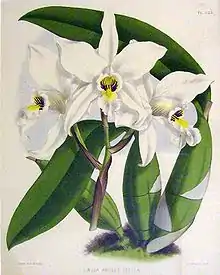 John Nugent Fitch (24 October 1840 – 11 January 1927) was a British botanical illustrator and lithographer,[1] best known for his contribution of 528 plates to The Orchid Album,[2] a landmark work of eleven volumes published between 1872 and 1897. Fitch was the nephew of botanical artist Walter Hood Fitch (1817–1892).[3] Fitch also contributed to Curtis's Botanical Magazine from 1878, joining a select group of illustrators such as William Kilburn, James Sowerby, Sydenham Edwards, William Jackson Hooker and Walter Hood Fitch. Fitch also produced plates for Lepidoptera Indica[4] by Frederic Moore. He was also employed by Trevor Lawrence to paint pictures of his orchids.[5]