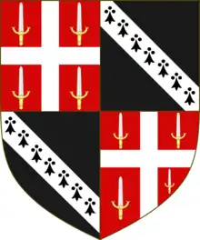 John Philipot was no doubt a native of Kent, but the statement of Heath[1] that he was born at Upton Court in the parish of Sibertswold or Shebbertswell, near Dover, cannot be correct, though the estate was held by his descendants.[2] He bore the same arms—sable, a bend ermine—as the Philipots of Philpotts, near Tunbridge.[3][4] His first wife brought him the manor of the Grench (Grange) at Gillingham, near Chatham.
